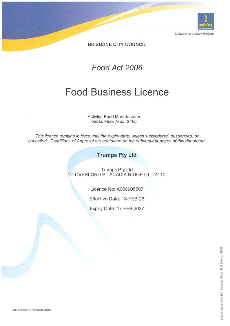 At Trumps, We hold various certifications including Food Safety Certification, Certificate of Registration, Certificate of Halal Compliance among others.